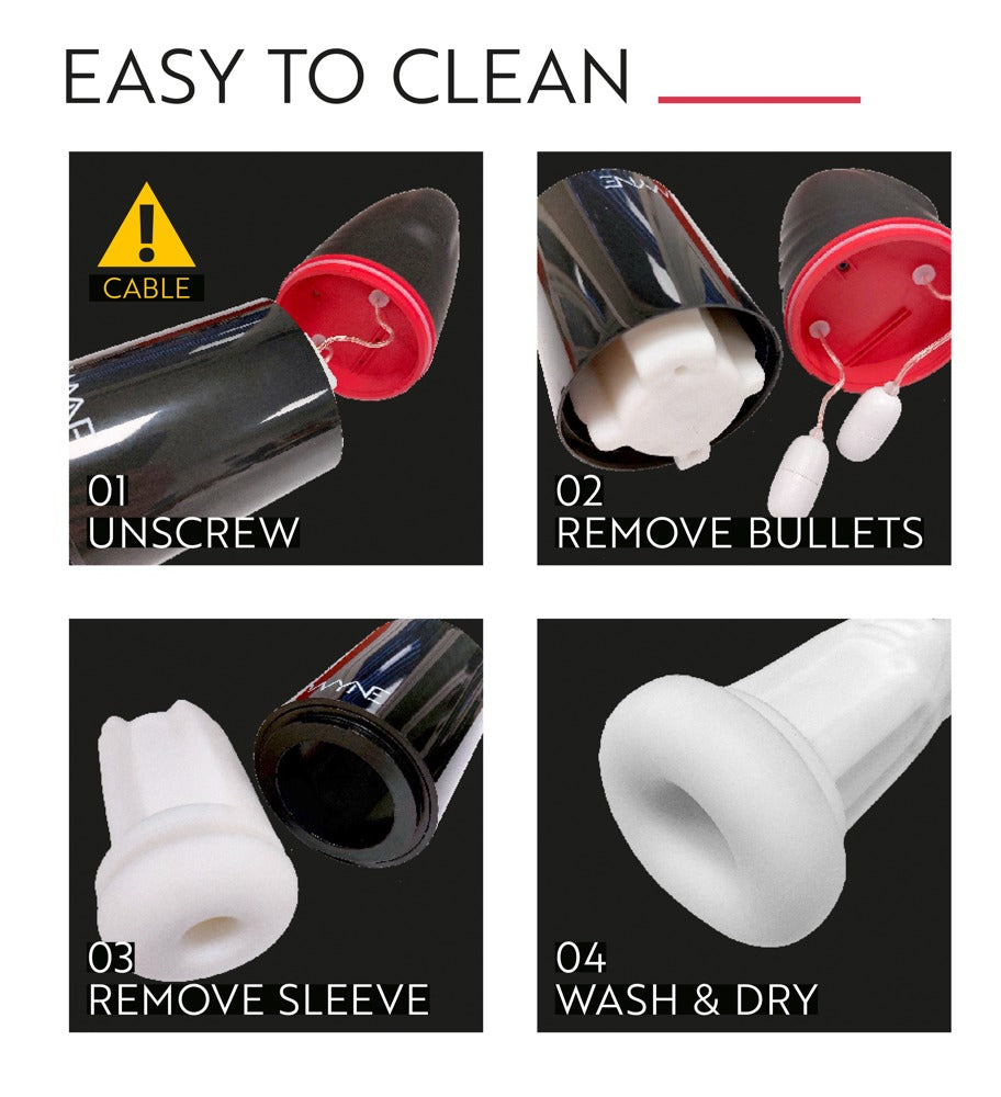 Nach dem Gebrauch den Sleeve herausnehmen, mit warmem Wasser und milder Seife reinigen und trocknen lassen. Für extra Hygiene empfehlen wir einen speziellen Toycleaner.